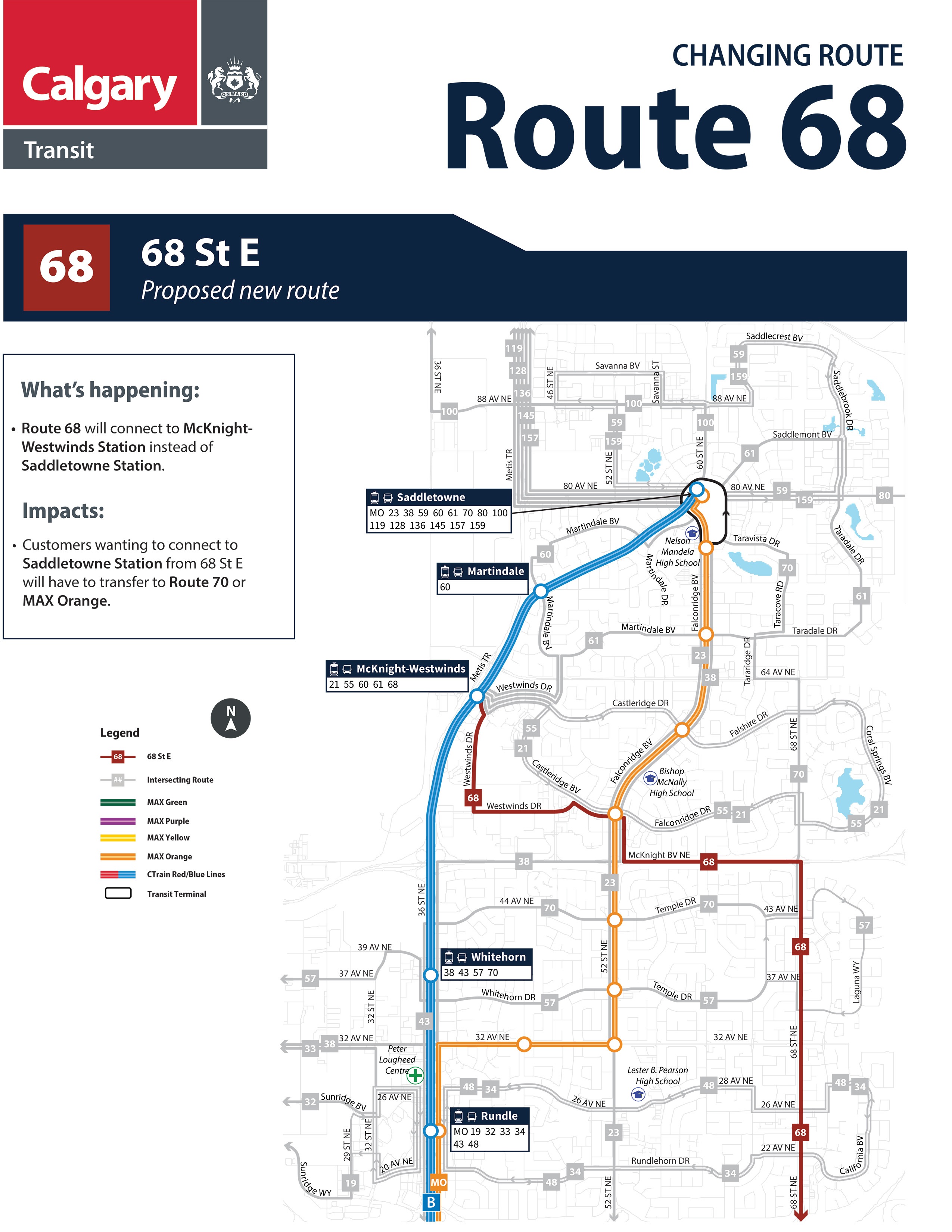 • New Routes 60 and 61 to connect between Saddletowne Station and McKnight Westwinds Station